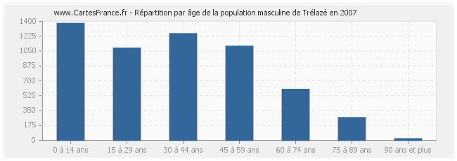 Répartition de la population masculine de Trélazé par âge en 2007 :