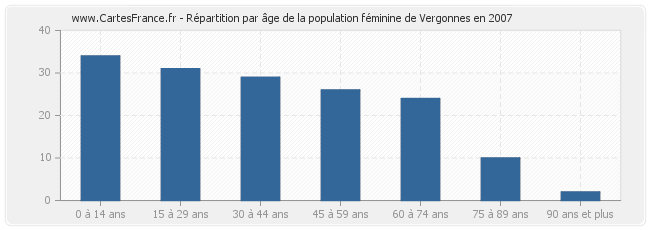 Répartition de la population féminine de Vergonnes par âge en 2007 :