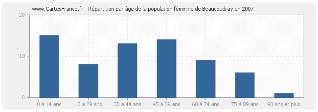 - Femmes de 0 à 14 ans habitant Beaucoudray : 15