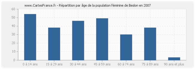 Répartition de la population féminine de Beslon par âge en 2007 :