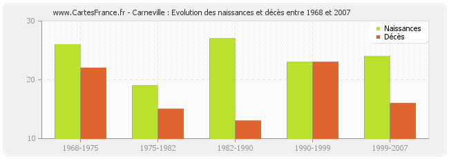 Carneville : évolution des naissances et décès de 1968 à 2007