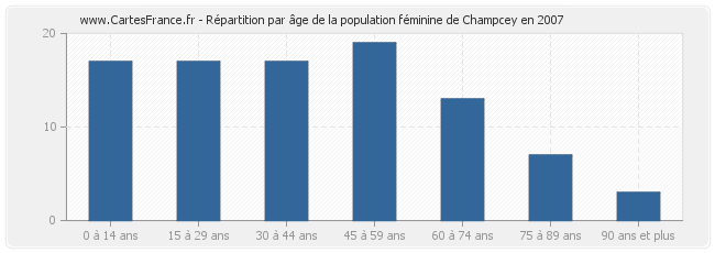 - Femmes de 45 à 59 ans habitant Champcey : 19
