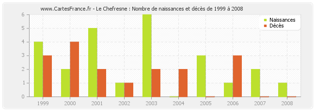 - Le Chefresne en 2006 : 1 naissances et 3 décès