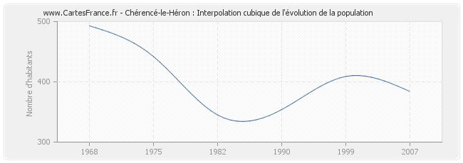 Cette courbe reprend l'historique de la population de Chérencé-le-Héron de 1968 à 2007 en interpolation cubique. Ceci permet d'obtenir plus précisément la population de la commune de Chérencé-le-Héron les années ou aucun recensement n'a été effectué.