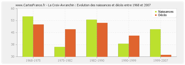 La Croix-Avranchin : évolution des naissances et décès de 1968 à 2007