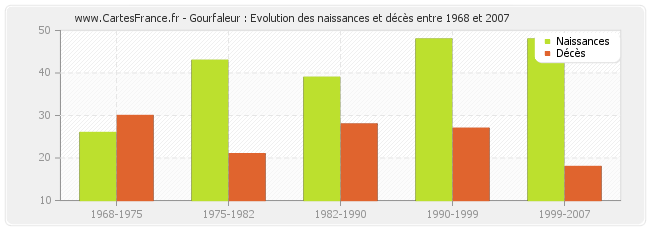 Gourfaleur : évolution des naissances et décès de 1968 à 2007
