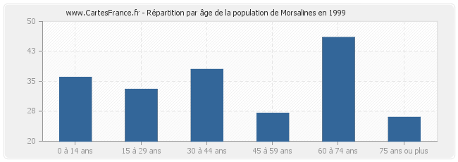 - Population de Morsalines de 60 à 74 ans : 46 habitants