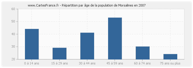 - Population de Morsalines de 45 à 59 ans : 53 habitants