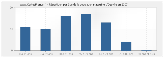 - Hommes de 45 à 59 ans habitant Ozeville : 17