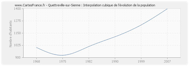 Cette courbe reprend l'historique de la population de Quettreville-sur-Sienne de 1968 à 2007 en interpolation cubique. Ceci permet d'obtenir plus précisément la population de la commune de Quettreville-sur-Sienne les années ou aucun recensement n'a été effectué.