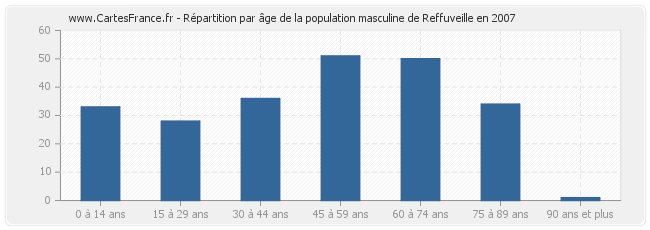 Répartition de la population masculine de Reffuveille par âge en 2007 :