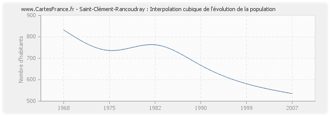 Cette courbe reprend l'historique de la population de Saint-Clément-Rancoudray de 1968 à 2007 en interpolation cubique. Ceci permet d'obtenir plus précisément la population de la commune de Saint-Clément-Rancoudray les années ou aucun recensement n'a été effectué.