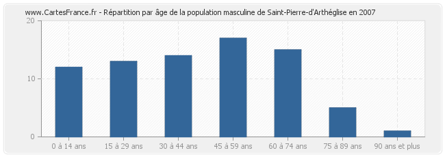 Répartition de la population masculine de Saint-Pierre-d'Arthéglise par âge en 2007 :