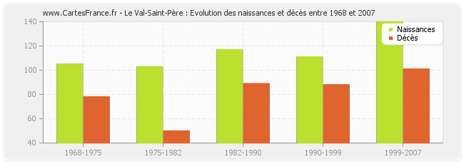 Le Val-Saint-Père : évolution des naissances et décès de 1968 à 2007