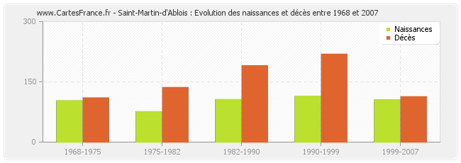 Saint-Martin-d'Ablois : évolution des naissances et décès de 1968 à 2007