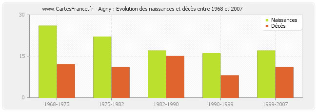 Aigny : évolution des naissances et décès de 1968 à 2007