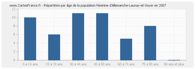 - Femmes de 45 à 59 ans habitant Allemanche-Launay-et-Soyer : 11