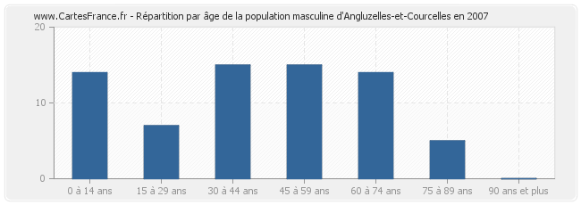 Répartition de la population masculine d'Angluzelles-et-Courcelles par âge en 2007 :