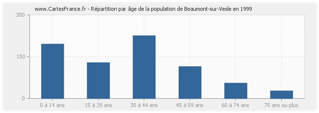 - Population de Beaumont-sur-Vesle de 30 à 44 ans : 225 habitants