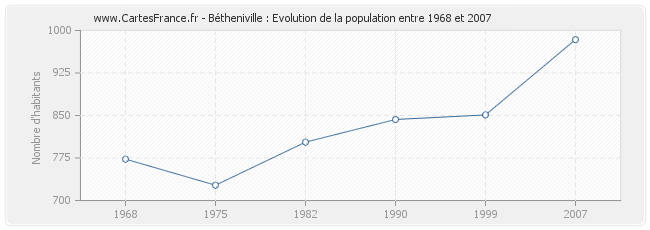 Historique de la population de Bétheniville de 1968 à 2007 :