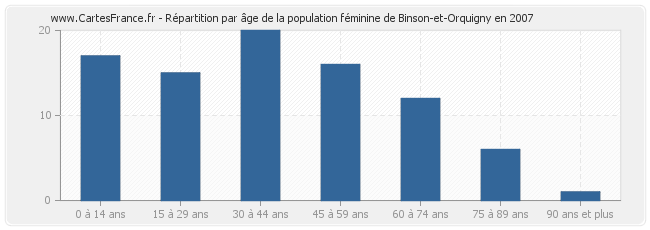 Répartition de la population féminine de Binson-et-Orquigny par âge en 2007 :