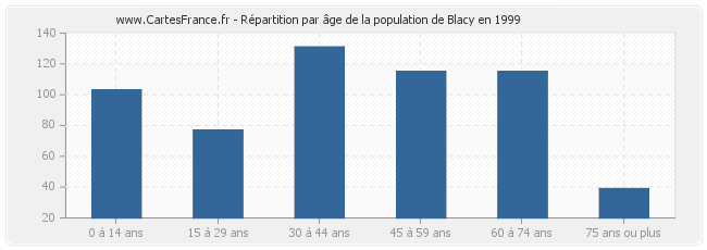 Répartition de la population de Blacy par âge en 1999 :