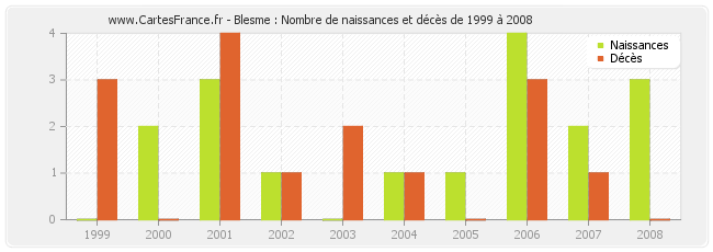 Blesme : évolution des naissances et décès de 1968 à 2007