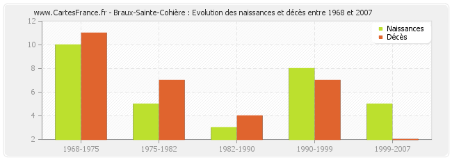 Braux-Sainte-Cohière : évolution des naissances et décès de 1968 à 2007