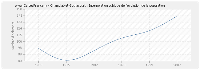 Cette courbe reprend l'historique de la population de Champlat-et-Boujacourt de 1968 à 2007 en interpolation cubique. Ceci permet d'obtenir plus précisément la population de la commune de Champlat-et-Boujacourt les années ou aucun recensement n'a été effectué.