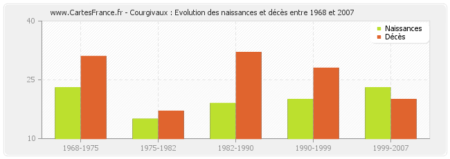 Courgivaux : évolution des naissances et décès de 1968 à 2007