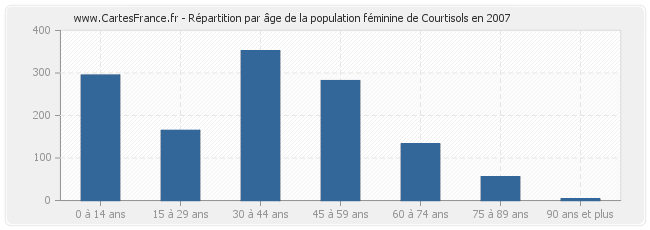 Répartition de la population féminine de Courtisols par âge en 2007 :