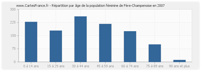 Répartition de la population féminine de Fère-Champenoise par âge en 2007 :