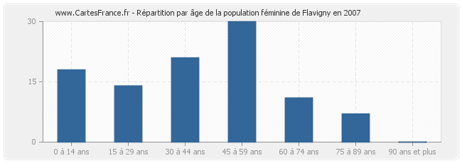 - Femmes de 45 à 59 ans habitant Flavigny : 30