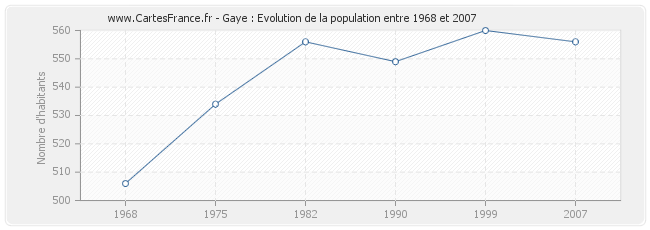 - Population de Gaye en 2007 : 556 habitants