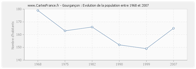 La population de Gourgançon était de 165 habitants en 2007, 149 habitants en 1999, 152 habitants en 1990, 166 habitants en 1982, 163 habitants en 1975 et 179 habitants en 1968.