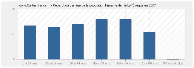 Répartition de la population féminine de Heiltz-l'Évêque par âge en 2007 :