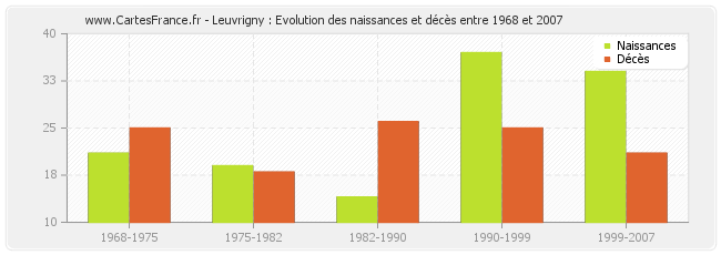 Leuvrigny : évolution des naissances et décès de 1968 à 2007