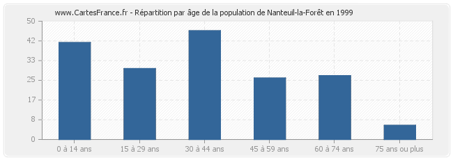 Répartition de la population de Nanteuil-la-Forêt par âge en 1999 :