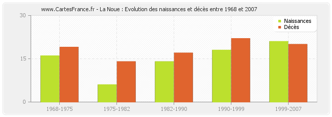 La Noue : évolution des naissances et décès de 1968 à 2007