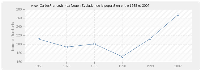 La population de La Noue était de 268 habitants en 2007, 213 habitants en 1999, 172 habitants en 1990, 201 habitants en 1982, 194 habitants en 1975 et 212 habitants en 1968.