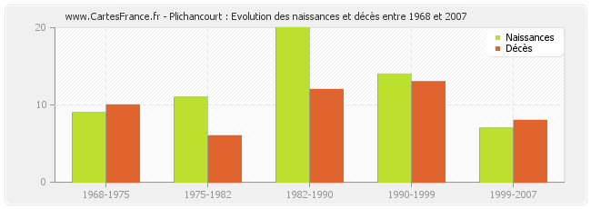 Plichancourt : évolution des naissances et décès de 1968 à 2007