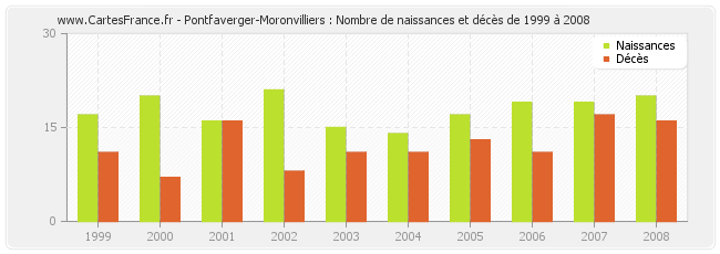 - Pontfaverger-Moronvilliers en 1999 : 17 naissances et 11 décès