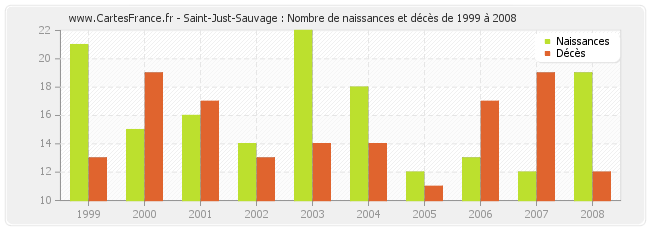 - Saint-Just-Sauvage en 2008 : 19 naissances et 12 décès