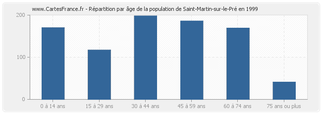 Répartition de la population de Saint-Martin-sur-le-Pré par âge en 1999 :