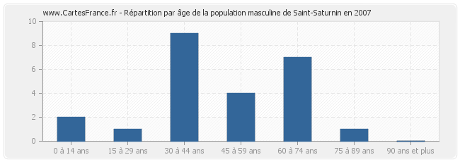 Répartition de la population masculine de Saint-Saturnin par âge en 2007 :
