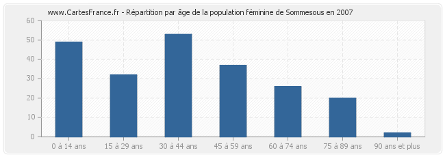 Répartition de la population féminine de Sommesous par âge en 2007 :