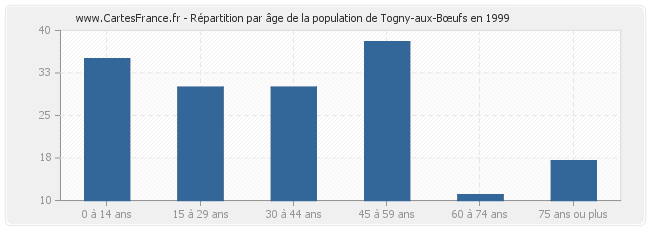 - Population de Togny-aux-Bœufs de 45 à 59 ans : 38 habitants