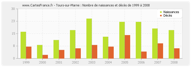- Tours-sur-Marne en 2008 : 17 naissances et 6 décès