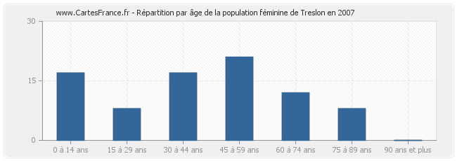 - Femmes de 0 à 14 ans habitant Treslon : 17