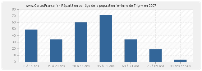 - Femmes de 45 à 59 ans habitant Trigny : 71